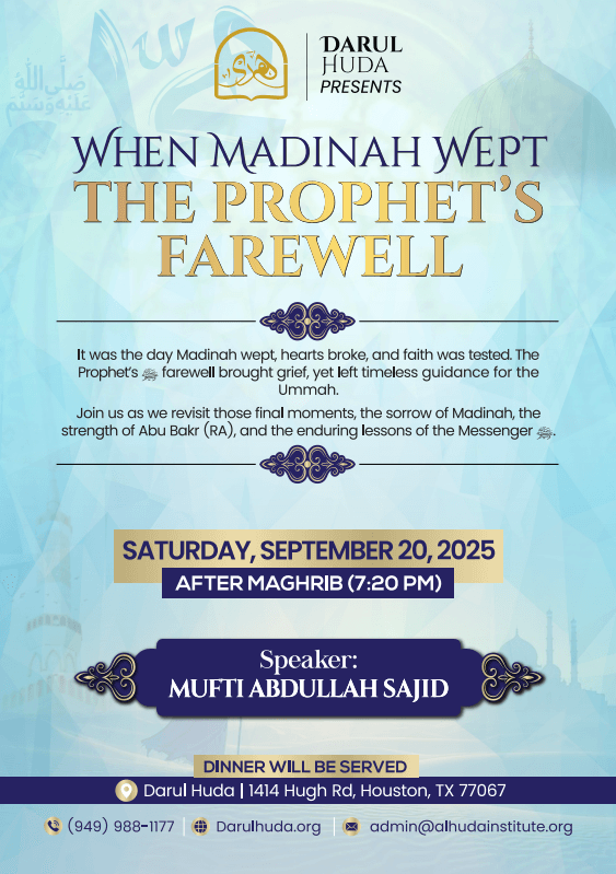 Join us for a moving reflection on one of the most emotional moments in Islamic history, the Prophet Muhammad’s ﷺ farewell. Together, we will revisit the sorrow that shook Madinah, the strength of Abu Bakr (RA), and the timeless lessons left for the Ummah.